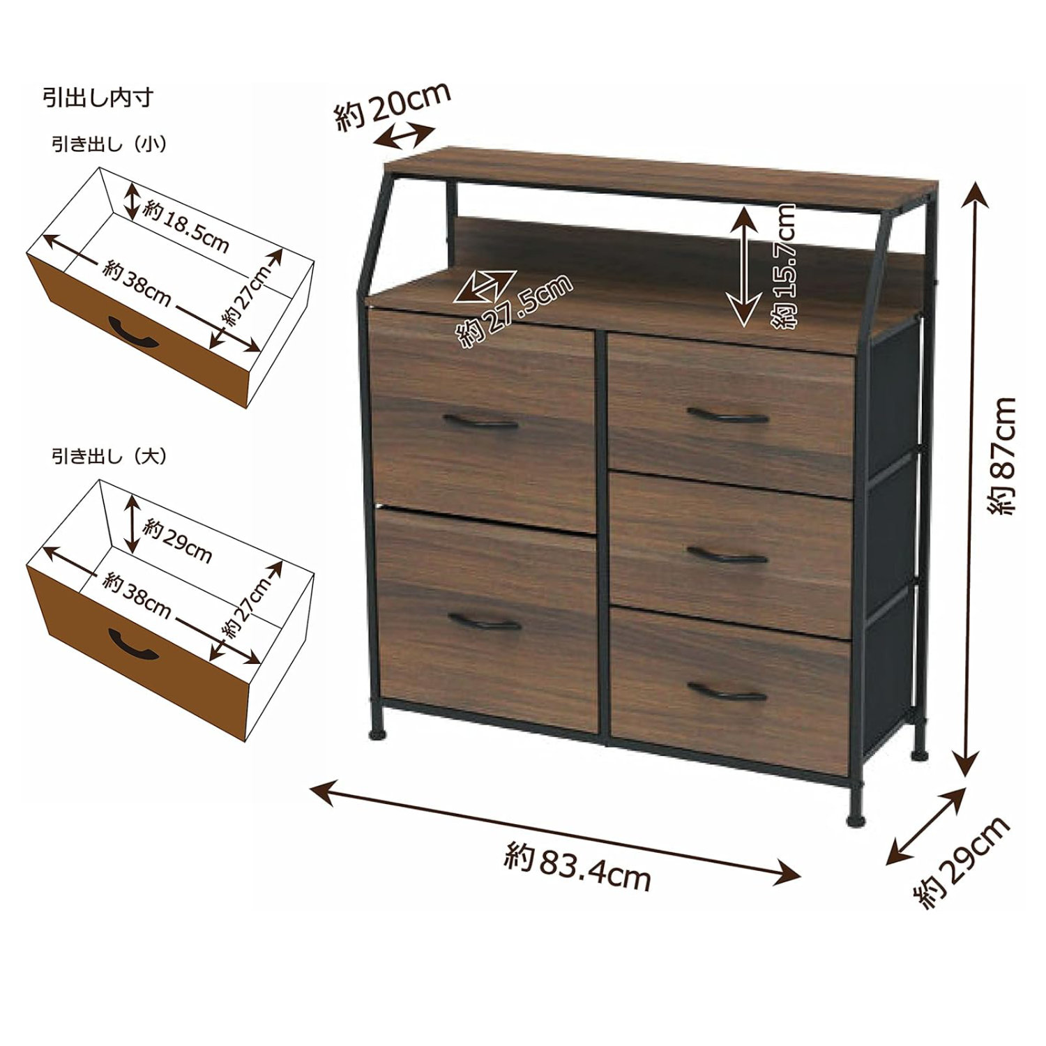 | 引出し内寸サイズ(約) | 幅38x奥行27x深さ18 cm ×3杯 幅38x奥行27x深さ29 cm ×2杯 |