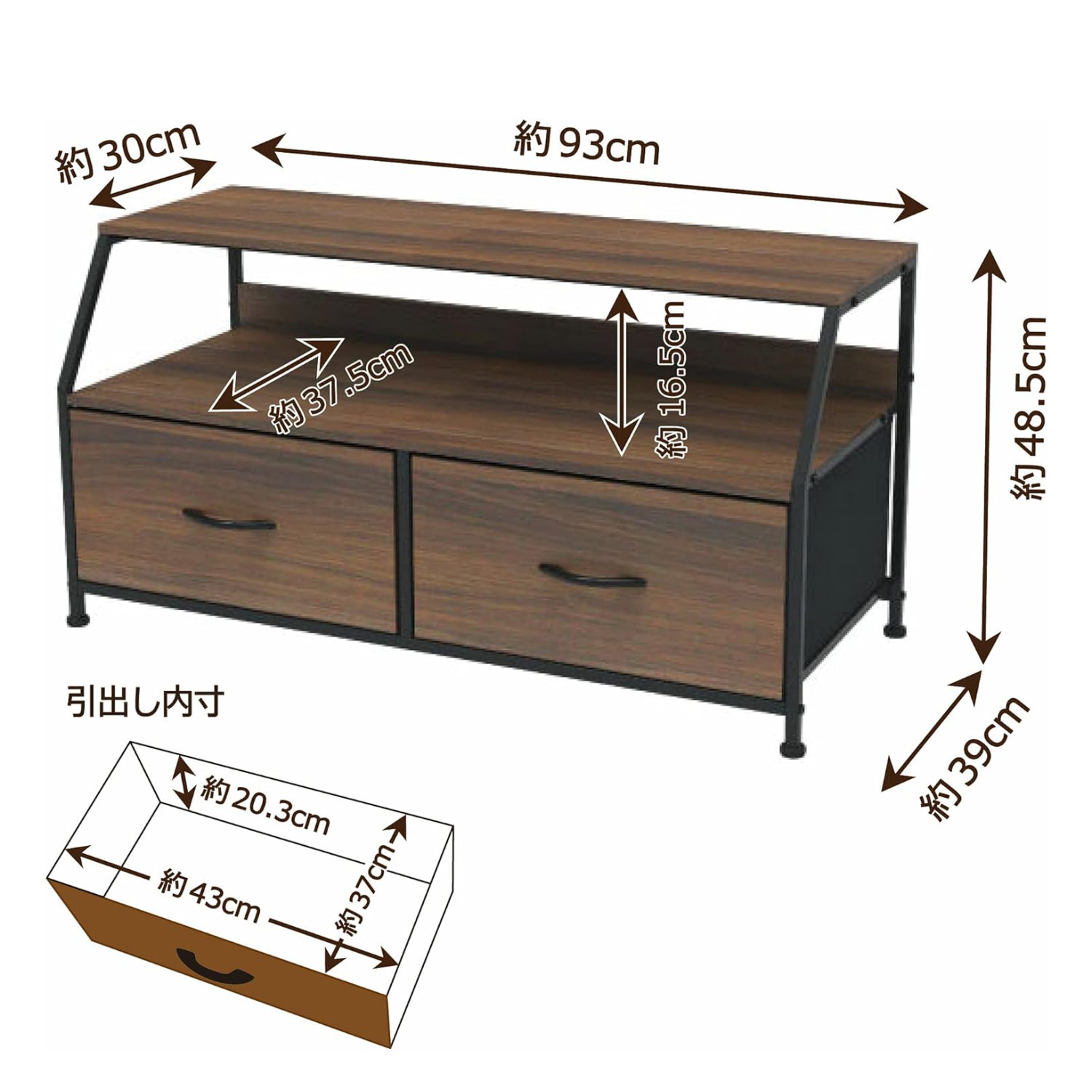 | 製品サイズ(約) | 幅93×奥行39×高さ48.5 cm |