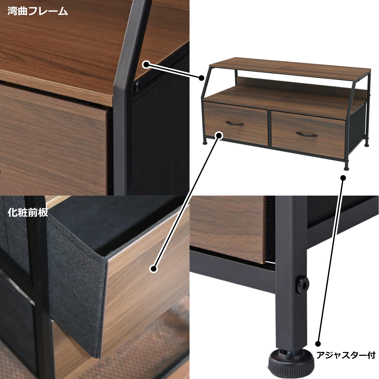 | カラー | ダークブラウン(木目調) × ブラック |