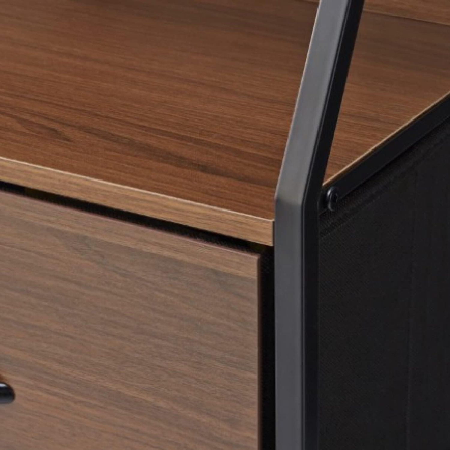 引出し前面にブラウン木目のプリント紙化粧繊維板を貼り付けてあるのが高見えポイント。