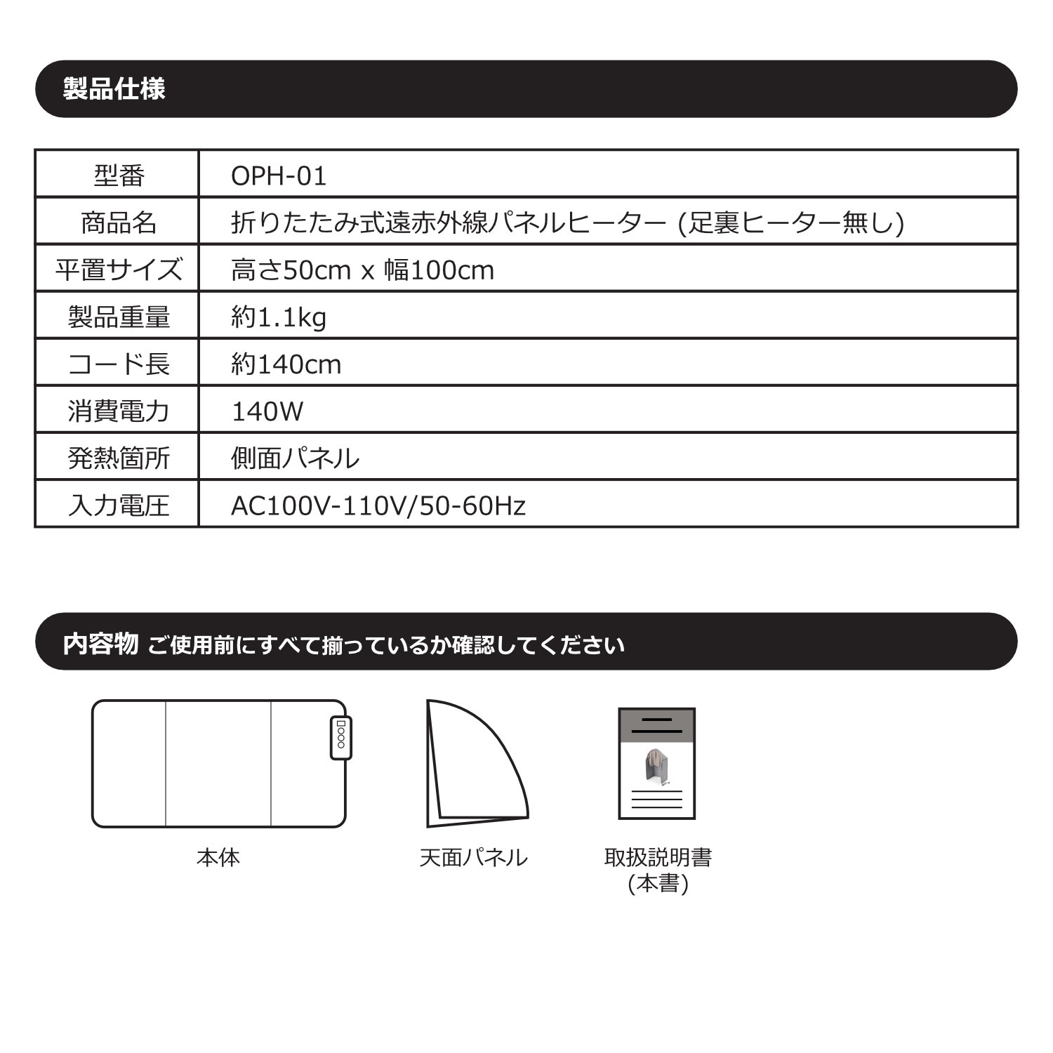 | 型番 | OPH-01 / 折りたたみ式遠赤外線パネルヒーター (足裏ヒーター無し) |