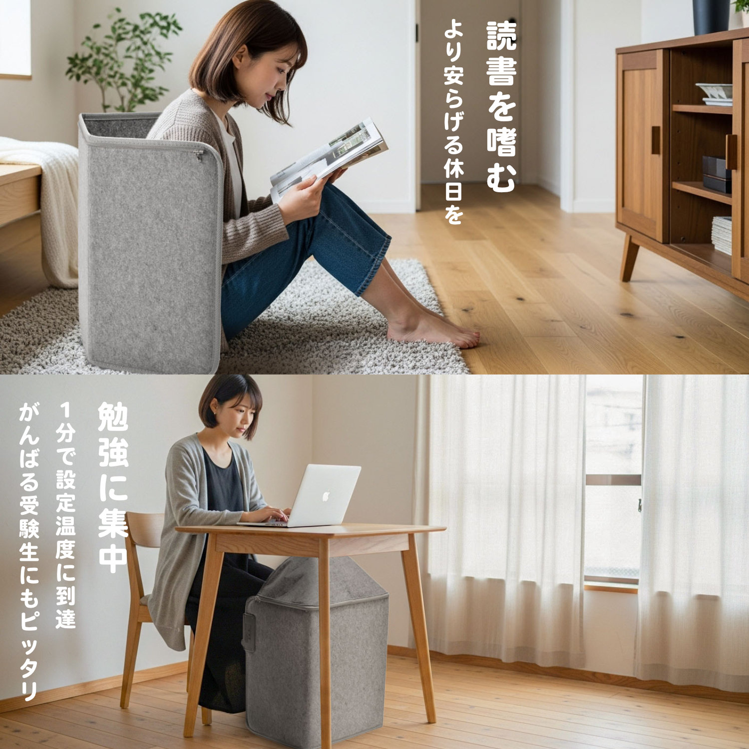 まるで自分だけの「簡易こたつ」のように効率よく温めることができ、高い暖房効果を実現します。