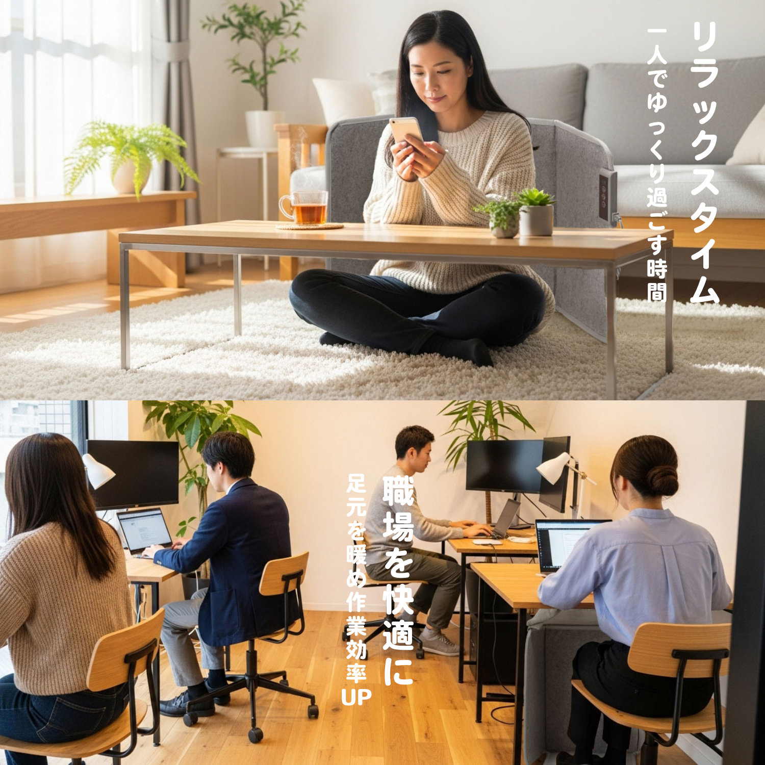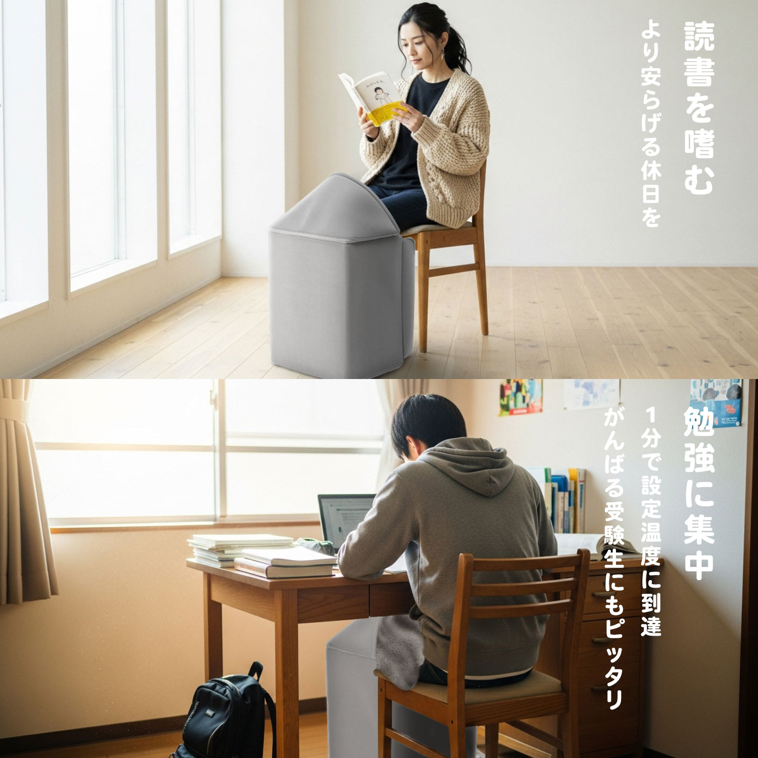 まるで自分だけの「簡易こたつ」のように効率よく温めることができ、高い暖房効果を実現します。