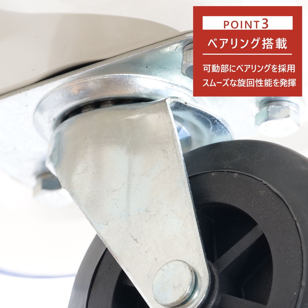 自在キャスター部品に特殊ベアリングを採用し軽くスムーズな方向転換を実現しました。