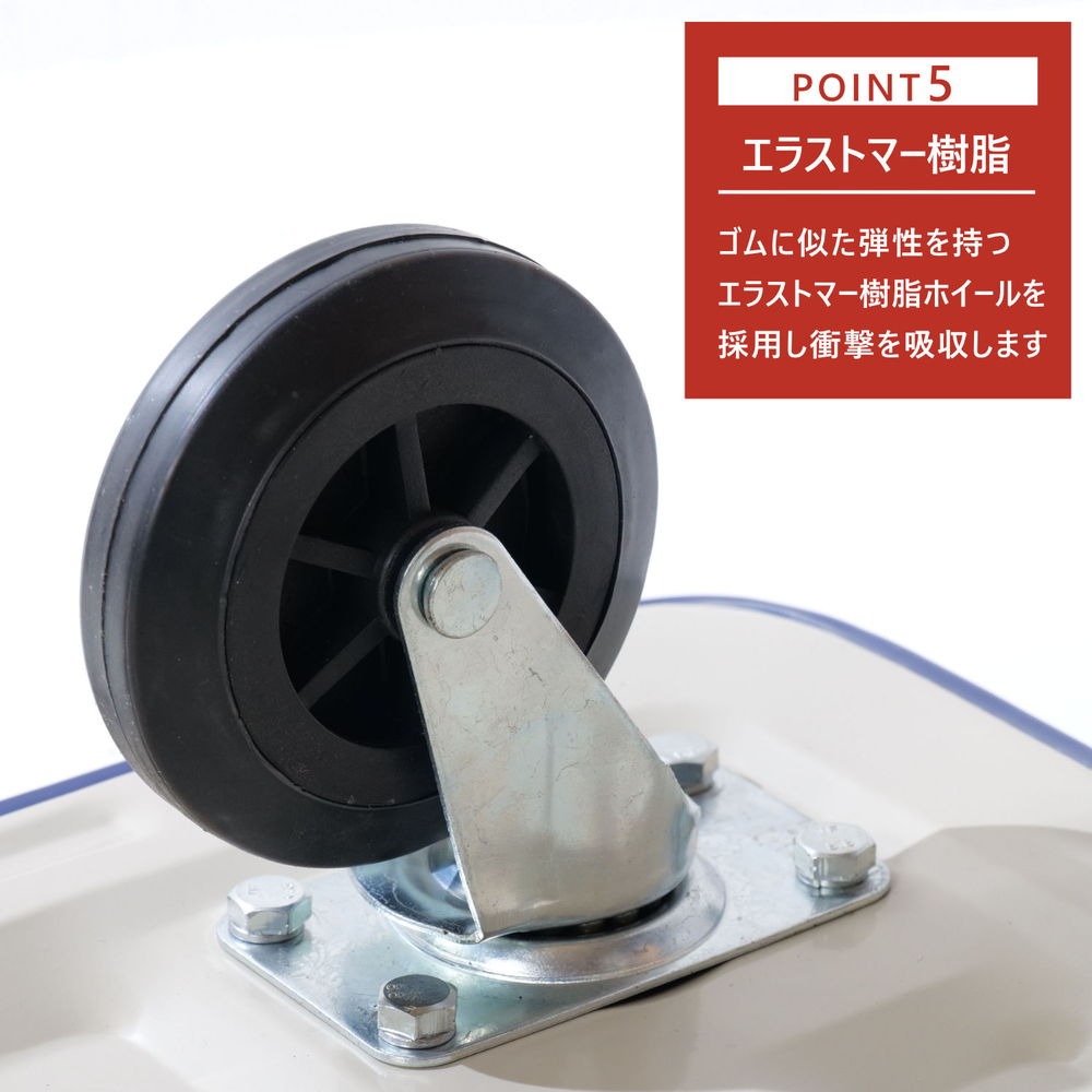 φ100mmのエラストマー樹脂ホイールがゴムのように衝撃を吸収します!