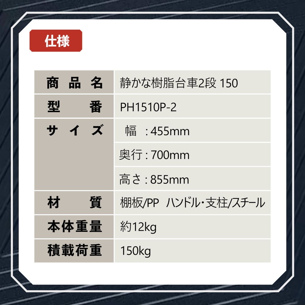 #PH1510P-2 #静かな樹脂台車 #静音台車 #2段 #多段式台車 #倉庫 #工場 #ホテル #ガレージ
